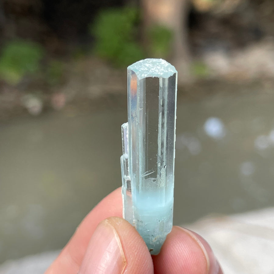 A 5.63-gram natural aquamarine crystal sourced from Afghanistan, showing a beautiful sky-blue hue with natural crystal structure. Its medium size makes it ideal for custom jewelry design, wire wrapping, or gemstone collecting. Aquamarine is valued as a stone of tranquility and clarity, known to soothe emotions, enhance communication, and bring balance to the mind and spirit. A unique piece for collectors, jewelers, and crystal enthusiasts.