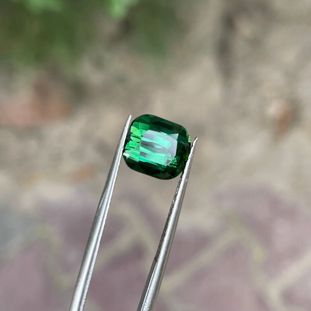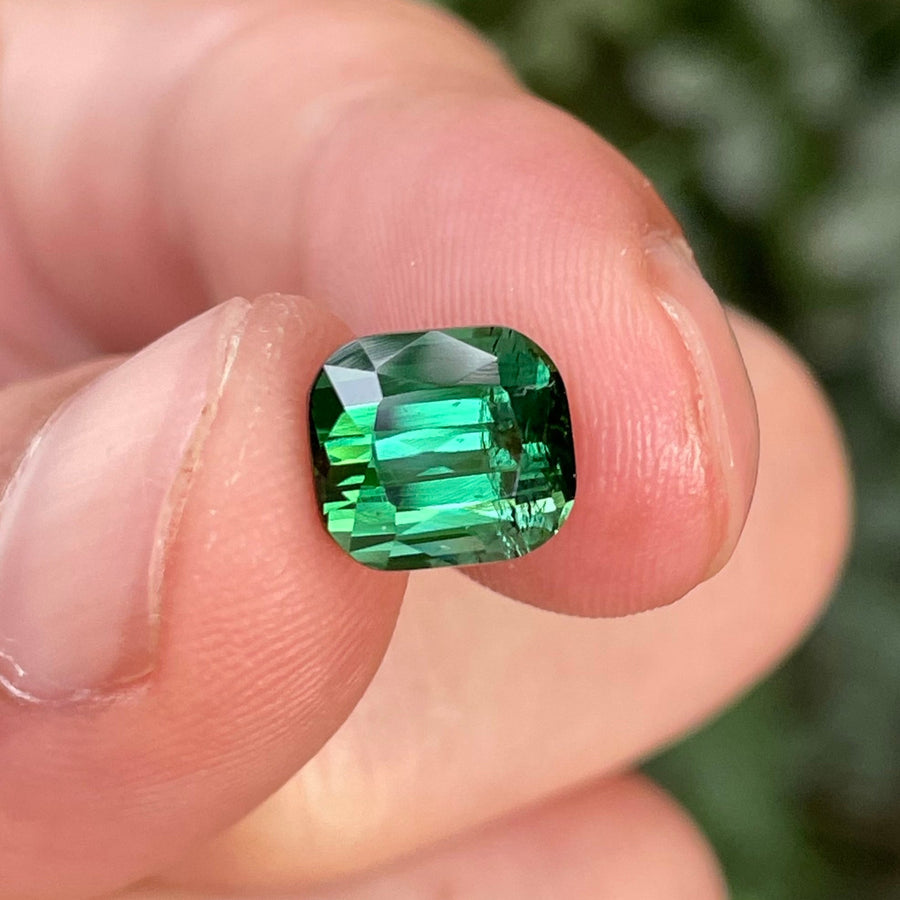 This natural blue-green tourmaline is expertly faceted into a step cushion cut that enhances both brilliance and depth. The gem exhibits a mesmerizing blend of blue and green tones, reminiscent of tropical waters. Sized ideally for a ring, it is untreated and ethically sourced, offering both beauty and authenticity. Loupe-clean or near-clean clarity ensures exceptional sparkle and durability, while its versatile profile makes it suitable for solitaires, halo designs, or statement custom rings.