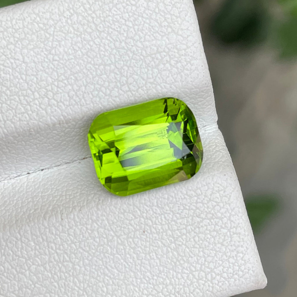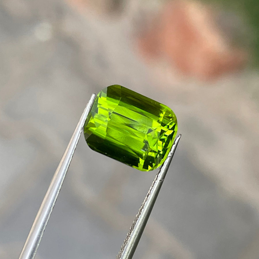 This natural peridot displays a refreshing green glow, cut into a cushion shape that enhances both brilliance and depth. Ethically sourced from Pakistan, the stone is eye-clean, offering exceptional sparkle and durability. Its ring-sized proportions make it ideal for solitaires, halo rings, or custom designer settings. With its rich green hue and untreated natural origin, this peridot is prized by both jewelers and collectors seeking authenticity and quality.